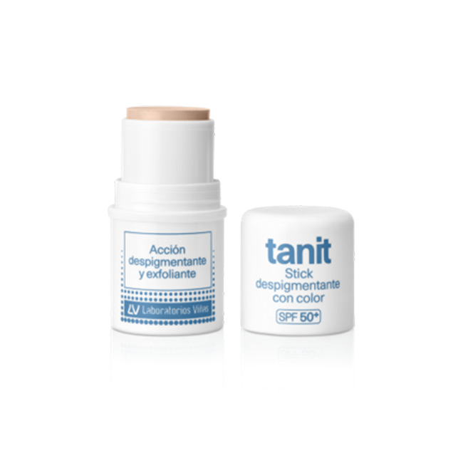 El Tanit® Stick Despigmentante con Color SPF 50 es la solución práctica para tratar manchas localizadas en rostro, cuello y escote. Su fórmula combina ITALINE T-PLUS (complejo antioxidante que previene manchas), ácido salicílico 1% (exfoliante que elimina el exceso de melanina), pigmentos de color que disimulan imperfecciones y filtros solares SPF 50+ para máxima protección.